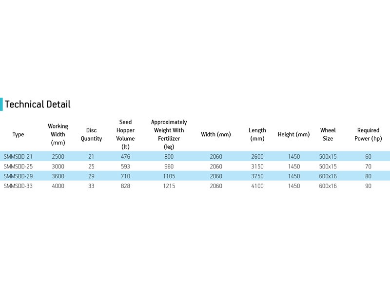 Seed Drill Spring Type has two type: a combined and mounted type sowing machine which can distribute the seed and fertilizers in the desired depth and equidistantly. It can function on at and sloppy elds thanks to its’ string chisel foot. The string chisel feet on the machine are designed in 3 rows and planned to plant in three-serial lanes. Thanks to its’ automatic and hydraulic tracking system which is presented as a standard, the comfort and continuity that are provided to the users. By means of its’ specially designed quietly functioning gearbox with three cam lobs, the gear ring for the seeds may rotate in slow speed and it can plant even the very tiny seeds regularly. The machine which is produced with 21-25-29 and 33 tine has interval spacing of 120 mm. By means of dovetail type harrow spring as a standard option on the machine, grading of the soil and covering the seeds over can easily carried out